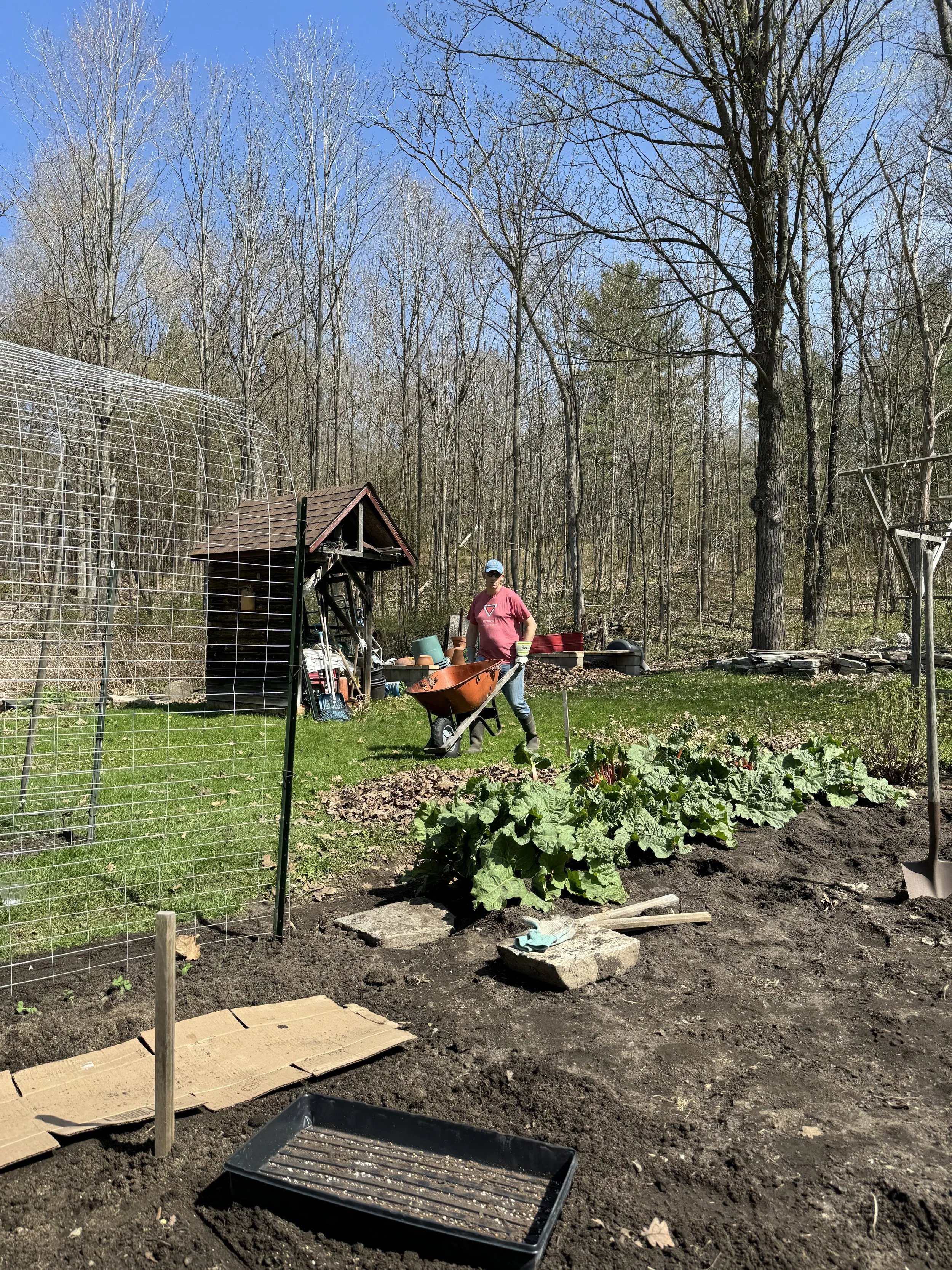 Pictured above: Harris Wade, 44, with Fragile-X Syndrome, supporting the pilot farm by providing wheelbarrow loads of compost to amend the beds before planting.